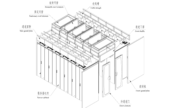 4、顶盖根据机柜的宽度进行模块式单元设计,每个单元均能独立安装,并能与相邻的单元连接。
